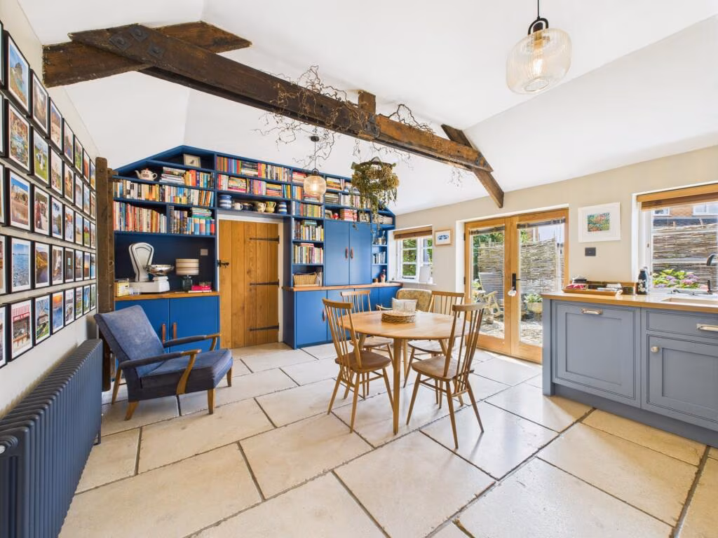Cedar Cottage is a handsome Grade II listed stone home in the heart of desirable Harpole, arranged over multiple floors and finished with thoughtful, sympathetic improvements. The house centres on a welcoming dining hall with an inglenook fireplace and window seat, a cosy sitting room with a log-burning stove, and a bespoke Jackson Stone kitchen that opens to a sunny courtyard. The garden room with underfloor heating and oak French doors provides a comfortable all‑season living space.