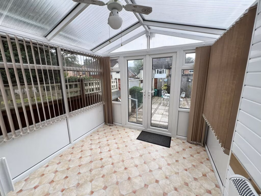 A well-kept two-bedroom end-terrace offering straightforward, low-maintenance living in a quiet Yardley cul-de-sac. The ground floor provides a fitted kitchen, lounge/diner and a conservatory that opens onto a west-facing paved garden — easy to manage for busy buyers. An attached single garage and private driveway add valuable off-street parking.