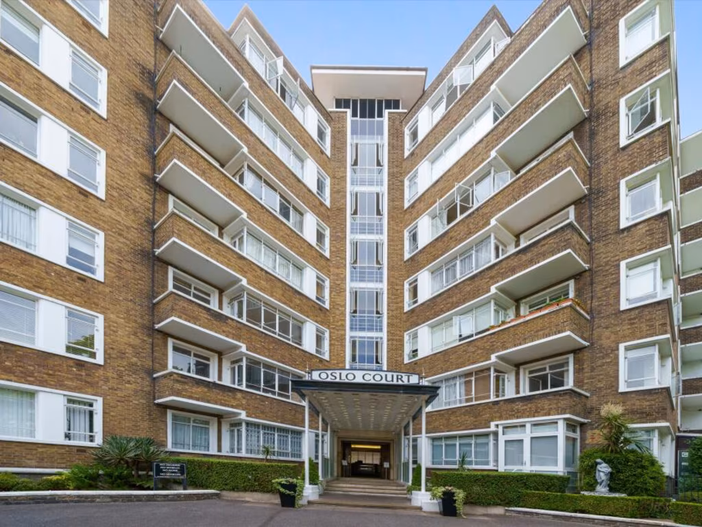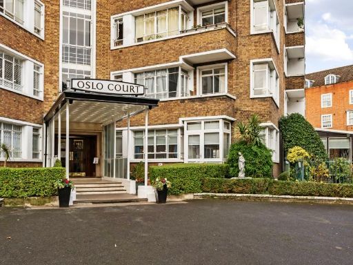 Light-filled one-bedroom apartment on the fifth floor of Oslo Court, offering direct city views from a private balcony. The semi-open plan kitchen/reception and polished wood floors create a modern, comfortable living space suited to professional singles or couples. A porter and central St John’s Wood location place cafés, shops and transport on your doorstep, with Regent’s Park, Abbey Road and the Jubilee line nearby.