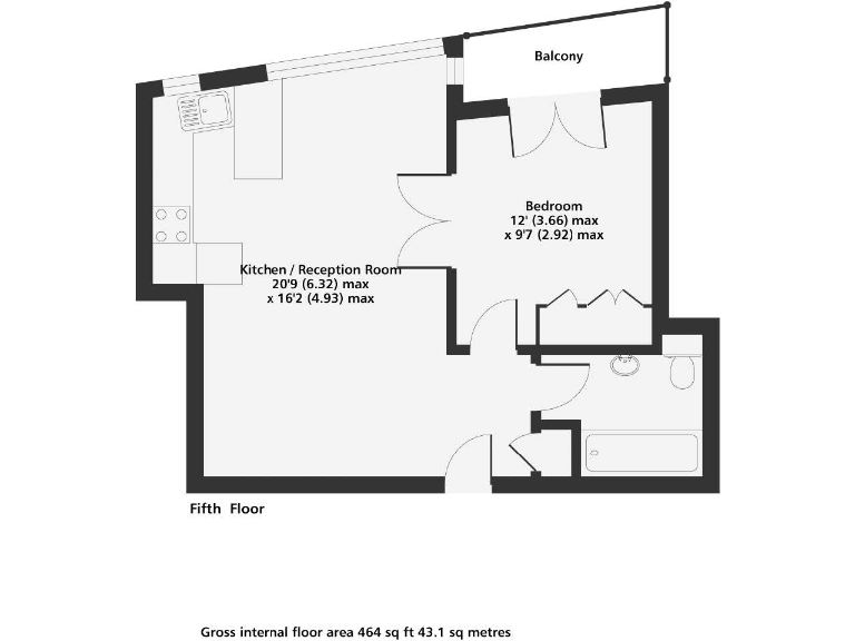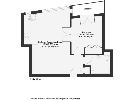 Approx 464 sq ft; leasehold with 110 years remaining